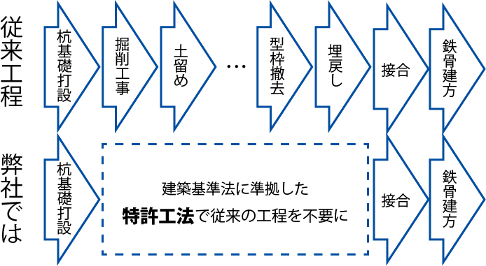 工事中も御社の事業継続への影響が少ない建築技術です。